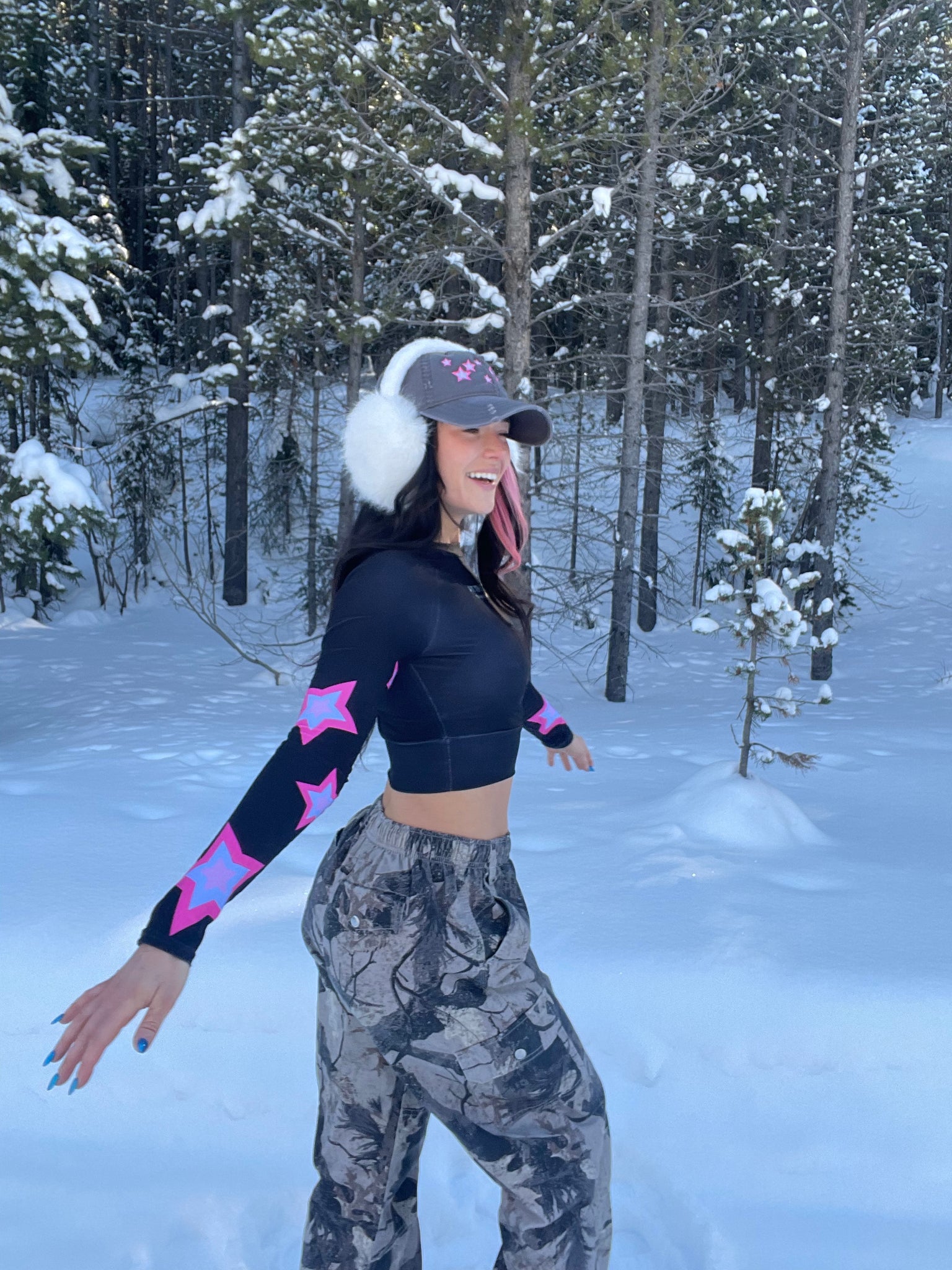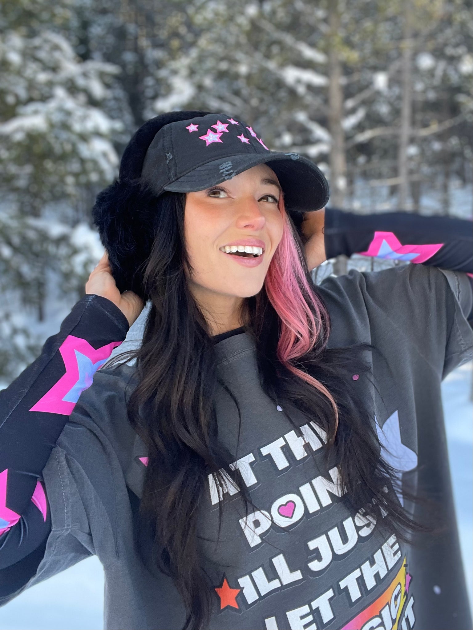 Music is a way for us to heal, grow, expand and cope! And this collection is all about that. Every element on this was hand-designed including the front and star sleeves! The material is wildly stretchy and very breathable, perfect for groovin around :)