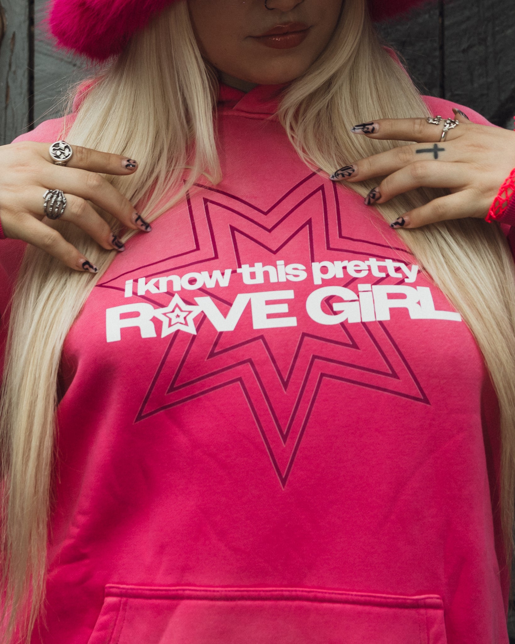 For the baddies who mix bows with bass, lace and late-night chaos. The Pretty Rave Girl collection is barbie-core meets underground rave queen :) Made with heavyweight fabric, this hoodie is designed for getting cozy at the afties or a late night set. Every element was hand-designed by me, Sav <3