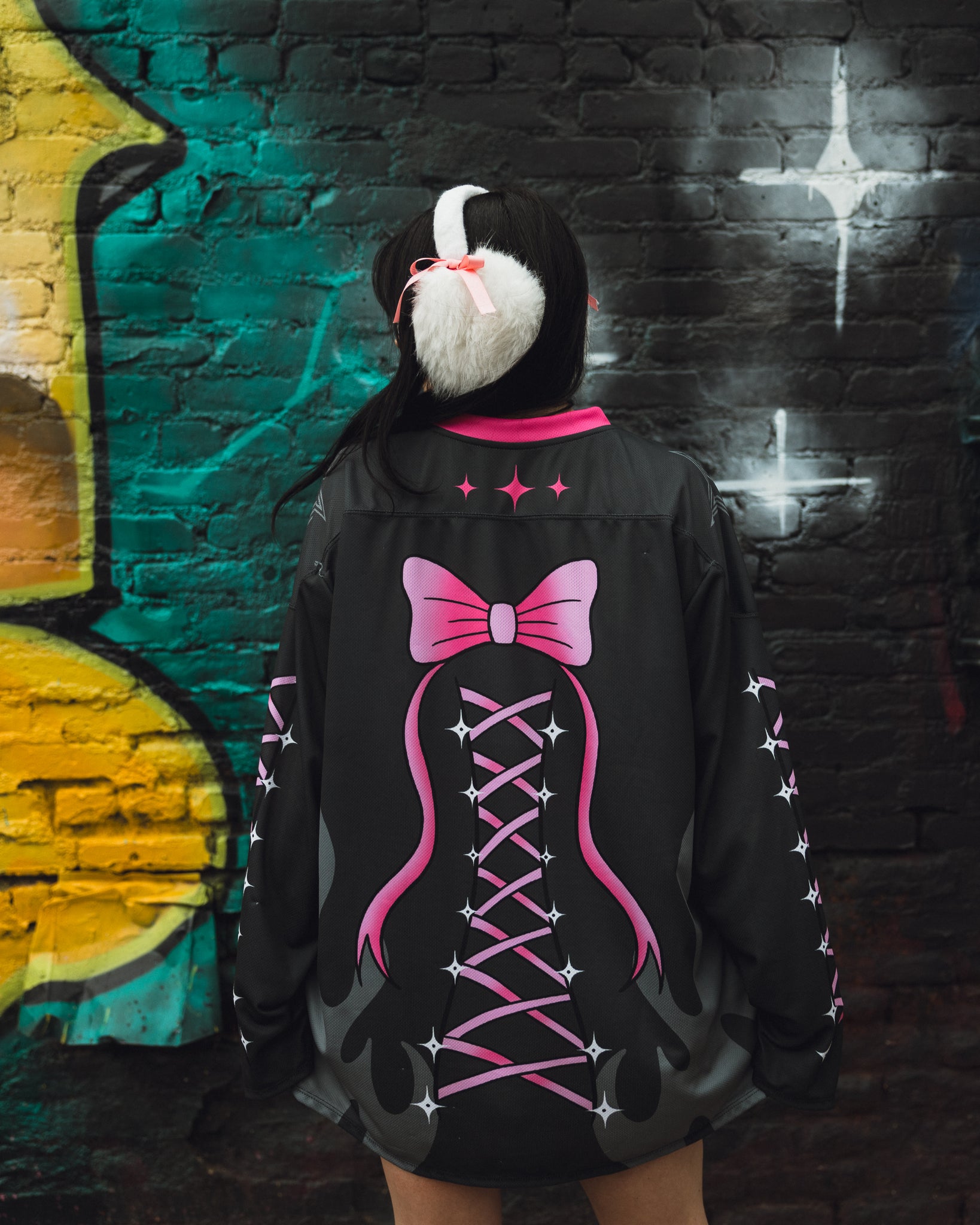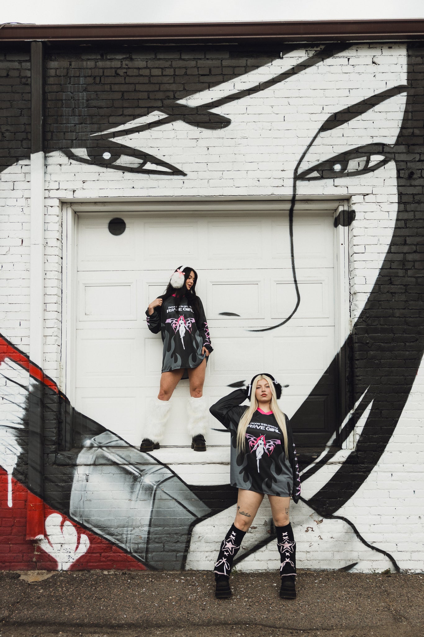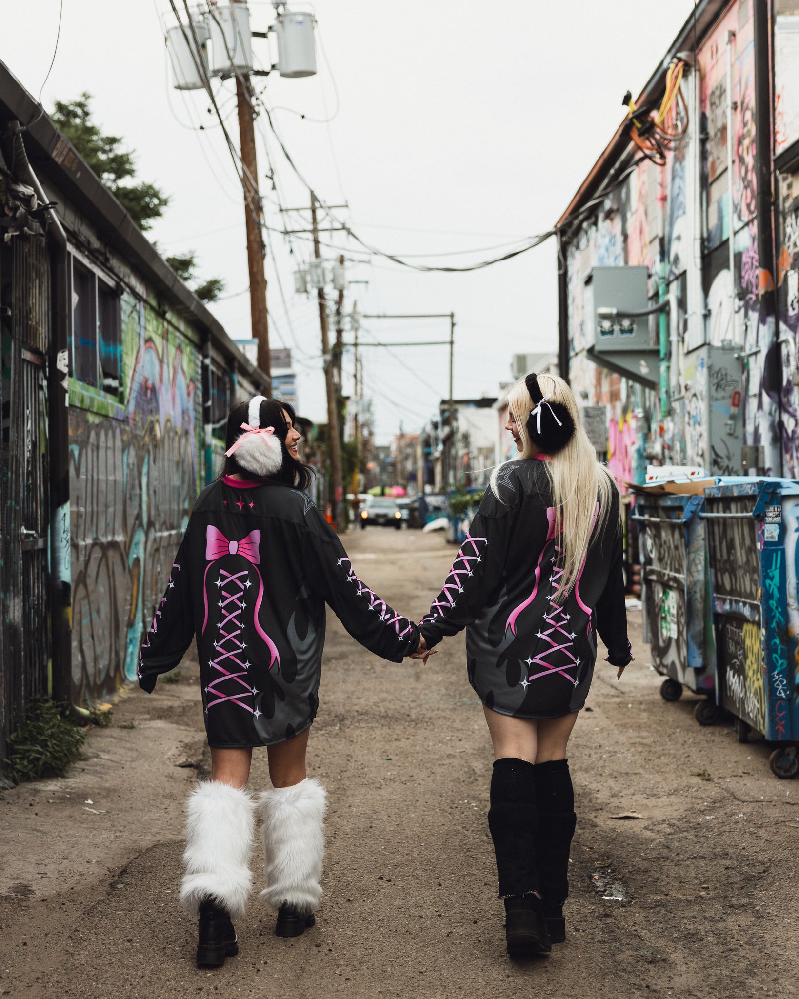 For the baddies who mix bows with bass, lace and late-night chaos. The Pretty Rave Girl collection is barbie-core meets underground rave queen :) Made with lightweight, breathable fabric, it’s designed for movement and comfort. Every element was hand-designed by me, Sav <3